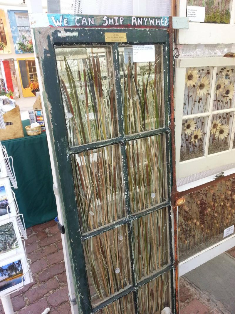 You can contact me by email, Facebook or by phone. Contact information is listed below. Full range of photos can be found on my Charleston Views Facebook Page. Click on the Facebook Icon at the bottom of the page. I maintain a revolving inventory of historical wooden windows in various colors, shapes and sizes. Windows can be custom designed with client floral requests, special shells or artifacts that have a sentimental meaning, I also design wedding windows. In short, if you can dream it up I can probably bring it to life.