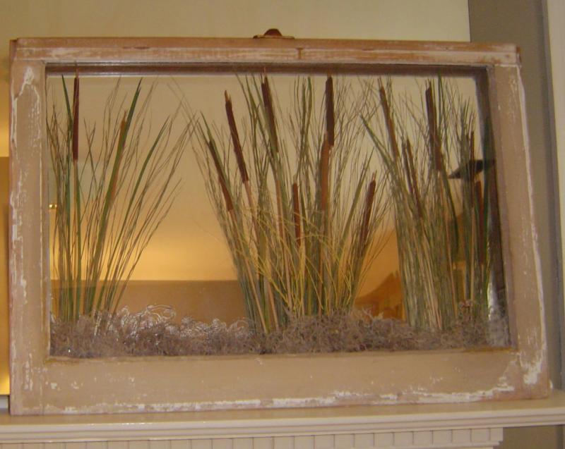 Cattails with Turquoise Phalaris, Splinter Grass and Rice Grass - Sea Shell and Sea Glass